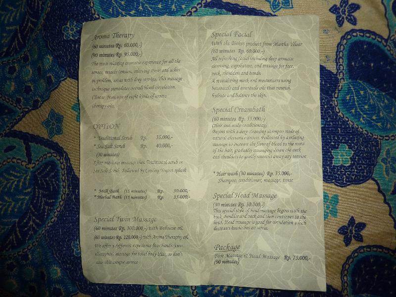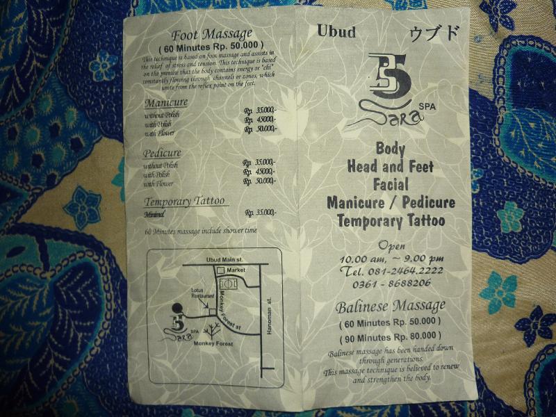 ウブドではマッサージ料金がかなり安いということで 毎回かかさず行っております。