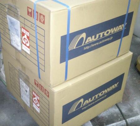 冬も本番ということで雪に備えてスタッドレスタイヤをネットで買った前に乗っていた車のスタッドレスが今の車種でも履けるのだが一本バーストさせてしまい、前シーズンの雪の時、フロント2本だけ履かせて乗り切った先日、数件カーショップを見て回ったがスタッドレスって結構高いんですねサイズダウンすればそこそこ安いタイヤもあり、今まで使っていたスタッドレスのホイールに履き替えればホイールを買う必要もない。自分の車、軽自動車なんですが165/65-13という扱い数が少ないタイヤで割高。155/65-13なら安いスタッドレスもあるのでこれを手持ちのホイールに入れかえてもらおうと店員さんに相談すると、うちは民間車検もやってるんでサイズ違いのタイヤを組み込んでお売りできませんといわれた。直径13ミリ違うのでスピードメーターの狂いとタイヤにかかる負担率がどうだらこうだら。あ~~~めんどくさい奴だなと思ったとたん撤収2件目の中古タイヤ店ぴったりのサイズのタイヤが16000円でアルミホイール付であったのだが店員に聞くと残りの溝が少ないのでワンシーズン持つかどうかと言われあきらめた他にも155/65-13のアルミホイール付のが3セットあったが29800円とかだった家に帰りネットで検索165/65-13を調べるとAUTOWAYという九州の会社が韓国製の激安スタッドレスを扱っていたタイヤだけだと1本3000円位で送料1本1000円う~ん悩むタイヤだけ買って、持ち込み組み込みしてくれるお店に頼むとして、組み替えと古タイヤ処分料で7000円位単純に16000円(タイヤ4本と送料)に地元でのタイヤ組み込み費用(タイヤ処分費用含む)7000円で23000円かかる…とその時、スタッドレスタイヤホイールセットというメニューがあるのに気づいたなんとスタッドレスタイヤとアルミホイールのセットでホイールにタイヤを組み込んでバランスをとった状態で発送してくれるというもの送料込み、税金込みで30600円これに決定注文から4日目に到着ダンボール2箱が届いた早速装着ビニール袋とかに入って届くのかと思いきやしっかりしたダンボールに入ってきたこれなら交換したノーマルタイヤをこの箱に入れて室内保管できるから助かる 新しいものとの出会いはどんなものでもうれしくなる Vertical BS10 13x4.0 +42 100x4 SILVER + NEXEN EURO-WIN スタッドレス 165/65R13 77T ジャッキで持ち上げノーマルと交換したところ ローテーションマークがあるのでこの文字が上に来る状態で前に矢印が来てればOK車が前に進むタイヤの回転方向とこの矢印をあわせる タイヤ4本だと2本ずつ回転方向が違うものが組み込まれている 4本装着完了これで2kmくらい走ってからホイルボルトを増し締めして一安心ノーマルなんか鉄ホイールにホイルキャップだからこっちのほうがカッコイイ年末の旅行に出かけるのにいきなり雪が降ったらアウトだから早めに買っておいてよかった スタッドレスアルミホイールセットはこちらノーマルタイヤもセットタイヤも激安です★AUTOWAYのトップページ★