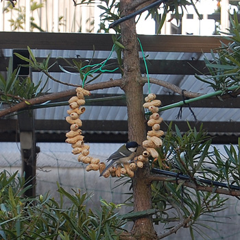 で、この冬も作ったら今年は作った翌日にはシジュウカラが食べに来ていたそうです。