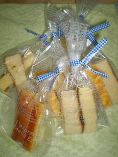 先日はホワイトデーでありましたね。今年はバレンタイン共々日曜日だと安心していると、思わぬ所に落とし穴が・・・いつの間にか、我が家の若者も中学生。中学生ともなると、クラブの先輩達などとのお付き合いも拡がり、社会性を身につけるにはいい機会にはなるんでしょうが、ことこういった行事になると、つき合いがあまり広いと困るんだよ~と言いたくなってくる。もらうだけならいいのよ、もらうだけなら。でもね、世の中それじゃいけないの。親として、そして、昔のお嬢さんとして、そこのところは私がしっかりと教えておかなければ・・・うちの若者が先月のバレンタインで一体いくつのチョコをもらったのか確認してはいないが、お返しはキチンとしておかなくては・・・あまり予算のない彼は「クッキーって、簡単に作れる?」と、結構マジで作る気でいたらしい。ただ、毎日クラブで忙しい彼には、とてもじゃないけどそんな時間はない。仕方なく、近くのスーパーでホワイトデーのコーナーを物色してみたが、いくら最安値のモノでも、それが10個近くにもなると中学生にとっては結構なお値段。最初は「私が払うから・・・」と息巻いていたが、日にちが近づくと何だかもったいない気がしてきた。(単にケチなだけ)かといってチロルチョコ一個っていうわけにもいかず・・・まだ中学生なんだから、詰め合わせでもいいじゃん・・・とも思ったんだけど、先にもらったチョコを見ると、それじゃあいけない気がして・・・仕方ない、ここは昔取った杵柄・・・かなり昔にはなるが、私が高校生の時、毎週のようにお菓子を作っては月曜日のお弁当でみんなに振る舞っていた腕を、久々に披露してやろうではないか~!!かといって、あまり凝ったモノを作ると、かえって予算がかさんでしまう。いろいろと考えた結果、スティックケーキを作ることにした。それも一種類では芸がない。やはり、ここはクラブの女子達に、私の力を知らしめるためにも最低2種類は作る必要があるかと・・・そして、出来上がったのがこれだ~。 情報では、今回お返しをするメンバーには、チョコが苦手な人が何人もいるらしく、残念ながらチョコモノは却下となった。そこで、まずはプレーンタイプ、そしてチーズケーキの二品。この詰め合わせでどうだ~!!味は保証するぞよ。もっとゴージャス感を出すために、あともう一品は色物・・・抹茶ケーキでもと思ったが、チーズケーキ用のクリームチーズが結構高かったので、抹茶はまた来年。見たか~、中学生女子たちよ~!!君たちも女子力向上のために、精進するのだぞ。