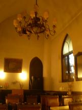 行って来ましたよ、例のシャンデリアのあるカフェへ。今回は着物姿の女性三人衆だったせいで、入店直後から「あら素敵な着物ね」と店の奥さんには好評で、まずはつかみはオッケーといったところ。前回と同じく一段下になった部屋?のテーブルにつき、ゆっくりと珈琲を飲みながら楽しくおしゃべりを・・・そりゃあ女ばかりが集まったのだから、話題は尽きませんわ。なぜ今の仕事に就いたのか、追っかけをする人の気持ちがわかるか、なんて、話は飛ぶ飛ぶ。でも、3人いるからそれぞれが話をしていれば私の割り当ては3分の1のはずなんだけど、気がつけばたぶん半分とまではいかないまでも4割程度はしゃべったかな。うっ・・・初対面の人でなくてよかった・・・私のイメージが~・・・そろそろ帰りましょうかとレジへ行くと、奥さんが「今日は着付け教室か何かの?」と話しかけてこられた。そこでまた話が弾むこと。じつはカメラを持っていっていたにもかかわらず、やはりほかのお客もいることだし・・・とちょっと遠慮してコレしか撮影できないでいた。そこで「ええ~い、今日は仲間がいるから大丈夫」と何の根拠もなく、思い切って「シャンデリアを撮ってもいいですか?」と聞いてみた。すると、どうどうぞとシャンデリアのスイッチまで入れてくださり・・・ありがたいことです。その写真がコレ。やっぱり堂々と撮影した方がキレイだわ。今日の参加者はこの方々。 左の方はお召しかな?、それとも紬かな?確認をしていないのですが、小さな柄が入ったピンクの着物に辻が花の染め帯を締めておられました。右の方は大島にパステルカラーの絞りの帯。半襟には茶色だったかな、これまた絞りで、なんだか可愛らしいコーデでした。お二人とも私よりも年上ですが、何だかカワイイ。私は運転手だったので、ちょっと帯がプレスされていますが、こんなカンジ。 結局帯は昨日教えてもらった結び方で、お太鼓風?なんか、半幅が好きになりました~。何故自分ですると上手くいかなかったのか、おケツの大きさは今後の課題ということにして、原因がわかると形もきまりやすいし、カジュアルな着こなしにはもってこいよね。
