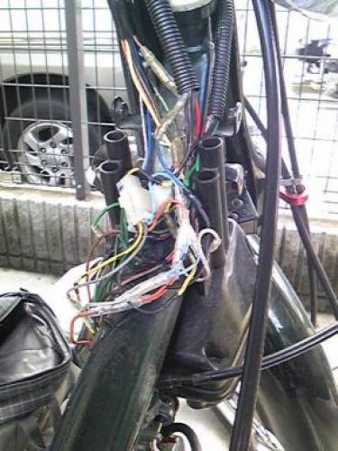 昼休みにコイル交換しました。長さを合わせてカットしてキャップをねじ込んで防水加工して終了。キック一発でエンジンかかりました。純正よりコイルが大きいので性能はいいのかな?でも中華用だから中はどうだか・・・まぁ帰りに試乗して様子みます。