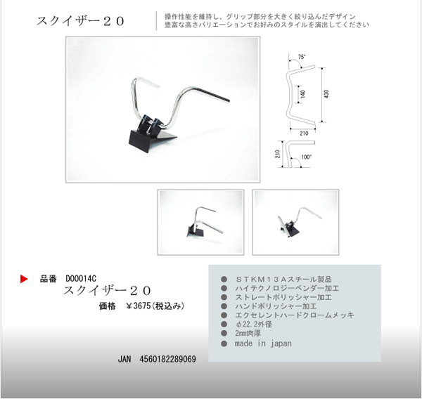 現在ハンドルはZファーザーの鬼シボリジュニア(現在廃盤?ローリングバージュニアの名前変更?)を付けていますがもう少し絞ったハンドルに変えようかと思ってます。で、検討中なのがこれです。ブログを書きながら写真を投稿する方法がわかったのでやってみました。上のフォトから簡単に投稿できました。