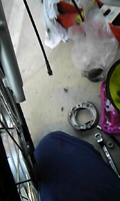 と同時に同じく注文したカブ用リアホイールセットについていたブレーキシューに交換(前後同型シューでした)