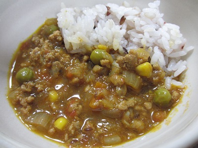 外国の食べ物に興味津々な私。新たな料理に一歩踏み入れてみましたヾ(@~▽~@)ノキーマカレー見た目フツーだけど(~д~*)ミックスベジタブルがなんともチープっぽさを醸し出してるけど(~д~*)(~д~*)これ、カレールーを使わず、クミン、コリアンダー、ターメリック、ガラムマサラ、レッドペッパーと5つのスパイスだけで作ったものなんですよぉ(~O~;)レシピでは冷凍グリーンピースのみを使ってるけど、あいにく最寄りのスーパーにはミックスベジタブルしか置いてなくてこれで代用。この5つのスパイス、初めて使ったけど、クミンの封を開けると途端にインド~な香り!わかりやすく言うと、インド料理やさんの香り。おお~!!この香りだけでもうすでに感動( ´艸`)♪子供たちにこのスパイス感が気に入ってもらえるかどうか不安だったけど予想以上に気に入ってくれ「インドカレー、インドカレー!」と連呼してました(^◇^*)5つのスパイスだけで手軽にできるインドカレー、おススメですよ~ъ( ゚ー^)♪