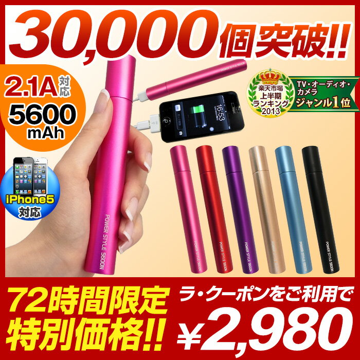 楽天スーパーセールで買い損ねて・・・2980円に再びなるのを待っていたのさ! 買うなら今でしょ! 子供っちに無くされてめっちゃ不便だったのさっ。。。( ;∀;) なくしてんじゃないわよっ!!! 【クーポン利用で2,980円】【2013年上半期ランキング1位】スマートフォン アイフォン5 充電器 スマホ モバイルバッテリー 大容量 5600mAh iPhone5s iPhone5c iPhone5 iPadmini iPad 3DS PSP ゲーム機【Apple純正ケーブル使用でiPhone5/5s/5c対応】【送料無料】
