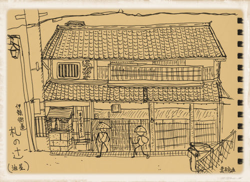 伊勢本街道のスタートである「札の辻」から様々な風景を繋いで伊勢まで向かっていきます。理想は現地スケッチですが、当分は写真からのスケッチで・・・・。
