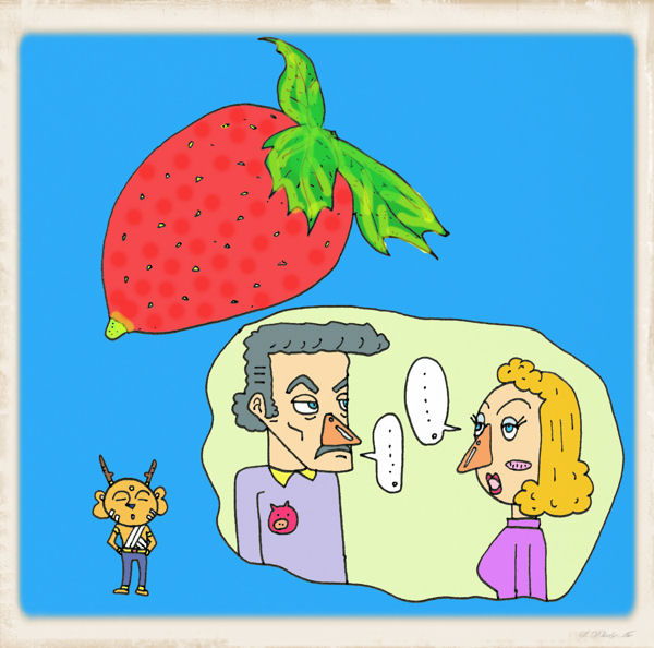 食後、イチゴを食べた。大きなイチゴ。先っぽが黄緑色に尖って角のようになっていた。
