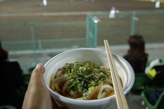 本日の晩飯代 これのみ400円なり!昨晩 ガイナーズ後期優勝決めました、やってくれます 我らがガイナーズ 塚本37投手!本日は サーパススタジアムでの ホーム最終戦 入場料無料です!最後ですので うどん いっときました。実は オリーブスタジアムの時は うどん300円だったのです。小市民の財布にとって 300円と400円の間にはマリアナ海溝のように 深い溝があるのです。オリスタで300円の時は 毎回うどん食べてましたが400円になってから 食べるのは 今日で2回目です。 お味は・・・お祭り騒ぎのときの 食べもの味覚は そうそうまぁ 縁日の りんご飴のようなものです。本日は 最後まで 読んで頂き ありがとうございました。ブログランキング応援お願いします!ワンクリックお願いします
