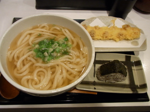 新規開拓店、ここは一般店です。本日の昼飯代 かけうどん350円の大盛り100円UPに、ちくわ天トッピング150円で しめて600円なり。大阪の うどん仲間の最近の 一押し( うだまさん )に突撃して参りました。拙者の会社から ほど近い うどん激戦区駅前第三ビルであります。カウンターのみの こじんまりした 店内ですが 噂通りの なかなかやるにゃぁ的 うどん屋さんでした。厨房には ばりばり シェフちっくな お兄さんがたが 三人 抜群のチームワークで うまげな うどんや、天ぷらや、肉うどんの肉を しゃか しゃか 作っていきます。そして、たぶんパートの とても作法が丁寧なおばちゃんが 出来上がった うどんを テキパき カウンターのお客さんに 運んでいきます。ランチTimeは おにぎりサービスも優しいなゃ ランキング応援お願いします!ワンクリックお願いします ああああ