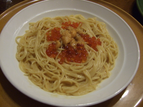 本日の晩飯代 雲丹といくらのパスタ850円に お得セット(サラダとデザート)+370円で しめて1220円なり!本日は 塚口で仕事の疲れを 食事で癒す私なのだはるしんさん → タントさん→はるしんさん→悠々さん・・・で ローテーション組めたら いやぁ しあわせだろなぁ!本日は 前回の 『ずわい蟹といくら』食べた時から、次はこれじゃぁぁぁと心に誓っていた 『雲丹のいくら』なのであります。もう あり得ない美味しさです、 もう メニューのコピーをそのまま引用『ガーリックバターと雲丹のソースは いくらと相性抜群』『ソースだけで 採算度外視のため 大盛りはできません』なのであります。850円は 十分 安かぁぁぁ!お得セットのサラダとデザートのババロアはこちら!ランキング応援お願いします!ワンクリックお願いします