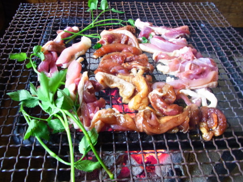 新規開拓店、ここは肱川沿いの 地鶏料理屋さんです。本日の昼飯代 これのみ2100円なり!ふかせさんの詳しいことはこちら本日は 大洲の肱川上流の 現場へ出張っす!現場の先輩の 案内で 隠れ家的 ここ ふかせさんへ。いやぁぁぁ、この道 今まで 何回も通ってますがこんな 渋い お店があったとは 気付んかったとです。川風が 風鈴を鳴らす、古風な作りの店内・・・落ち着きますなぁ地鶏は 塩・たれが 選べます。炭火の前は 暑かったぁぁぁなのですが、この地鶏 うまぁぁぁぁ。新鮮で こりっこり・・・冬は 予約制で 地鶏鍋も やってるとのこと。冬にも ぜひ 来なやぁぁぁ。そうそう 地鶏の親子丼も ちょう うまげでした!デザートは ゆずのシャーベットなり! 涼しい!ランキング応援お願いします!ワンクリックお願いします