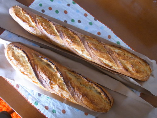 新規開拓店 ここは パン屋さんなのであります。 本日の昼飯代バゲット260円に バタール260円でしめて520円なり!KUKKIAさんの詳しいことはこちらバケットは 細麺の方で・・・ ちゃうちゃう麺やなかった細身の方で 皮?がパリッパリでうまぁぁバタールは太い方で 皮は柔らかめですが しろいパンの とこがふわふわっで うまぁぁ!どっちも 人生で3本の指に入るほどの 美味しいフランスパンです。焼きたてを 即効 全部 完食です。 なんて し・あ・わ・せ拙者 フランスパンも うどんと ため張るくらい 好いとうとです。一昨日かな パン友から『お前の 勤め先の すぐ近所に めっちゃ 美味しいパン屋さん あるなぁ、クッキアだったけ?』っと 耳寄り情報がありまして『むむむむ、 美味しいパン屋さん クッキア?? 知らぁぁん 美味しい うどん屋さんは いっぱいあるけんど??』 確かに 拙者の 勤め先から 徒歩2分46秒です。毎日 この通りは 車で10回以上 通っておりますがかぁぁぁ、 知らんかったぁぁぁ! ってか たぶん わからんし この奥では・・・本日も地図印刷してってのに 2回 素通りしてしまったとです。 超穴場の 製麺所をさがすよな スリルとサスペンスなのであります。お店に入ると なんとも いいパンを焼いてる 香りが ぷぅぅぅーーーんっと!お目当ての フランスパンは あぁぁ 売り切れかぁぁ?でも 優しい 奥さん(きっと ご主人が奥でパンを焼いておられる)『10分くらいで 焼きあがりますよぉぉ』焼きたてを待つこと10分 うわぁぁぁ、 おいしそ!ランキング応援お願いします!ワンクリックお願いします