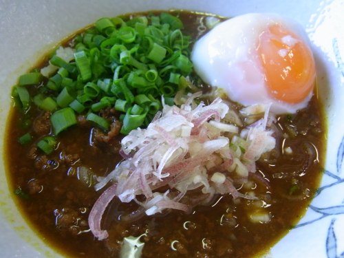 本日の 昼飯代 これのみ480円なり!(ちなみに 小は380円っす)お彼岸の中日 秋分の日の 本日は『また 冷やししっぽくゆどんを 食べとらーーーん』とひと夏の後悔?を しとる 麺友その1と 高雄さんへそうねんですよ、 冷やししっぽくは 今月いっぱいです。しかし あったかい しっぽくも うまぁぁぁですから拙者は 待ち遠しいのであります高雄さんの 週替わりうどん 今週は こちら拙者は 週替わりうどんを 注文するやいなや 大将が『aibopapaさん 秋津風さんからの伝言ですよ、 うどんの量は (中)にしなさい』かぁぁぁ、 今週も 秋津風師匠に ポールポジションをgetされたのであった。この ぴり辛 カレーつけだし、ほぼ46%が ひき肉だぁぁ!うまぁぁぁ!秋津風師匠の 伝言 さすが大正解です、 ひき肉の量が うどん(中)で ちょうどっす。茗荷と 温玉と ねぎが混ざり合って 絶品の カレーつけ麺です。カレー好きには たまりませんなぁぁ。 麺友その1は 1年ぶりの 冷やししっぽく小480円に 舌鼓っす。本日も 真横アングルで いろどり鮮やか しっぽく 撮ってみました、この ちょいと生姜味の とろっと煮込んである鶏肉が 好きなんだなぁ。懐かしい写真はこちらランキング応援お願いします!ワンクリックお願いします