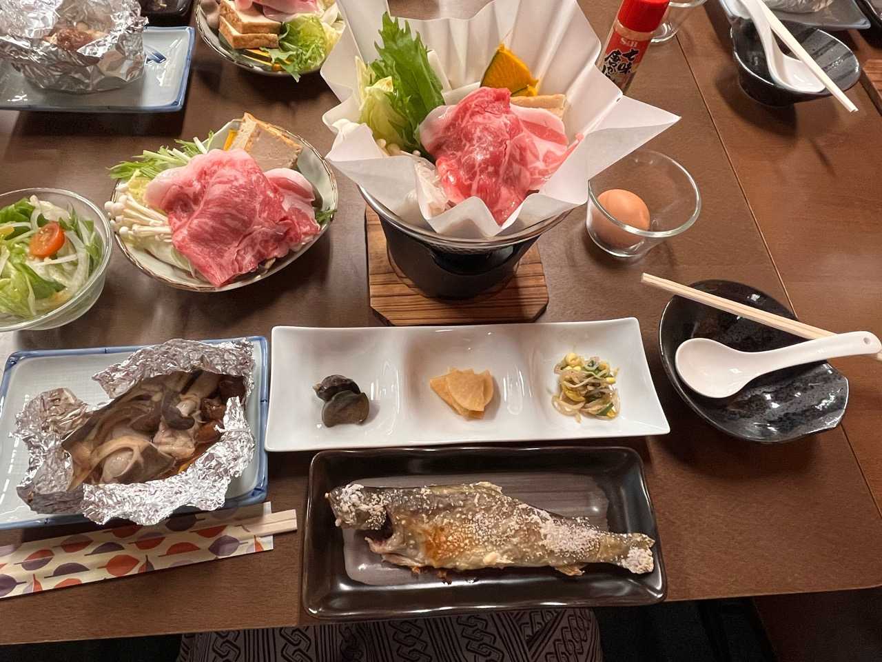 昨日の晩飯代は、こないに豪勢でして?円なり!おっと生ビールは700円っした!七倉山荘に泊まりまして、一泊朝夕食事付+お昼の弁当代で15000円なり!七倉山荘の詳しいことはこちらすき焼き・・・ うまっ!小鍋ゆえ、これと同じ量の具材が隣のお皿にありまして最高かぁぁ!いわなもうまっ!鶏肉ときのことホイル焼きもうまっ!そして、お代わりし放題のご飯もうめぇぇぇぇぇ!温泉も最高でしたぜったいにまた来ますよ!
