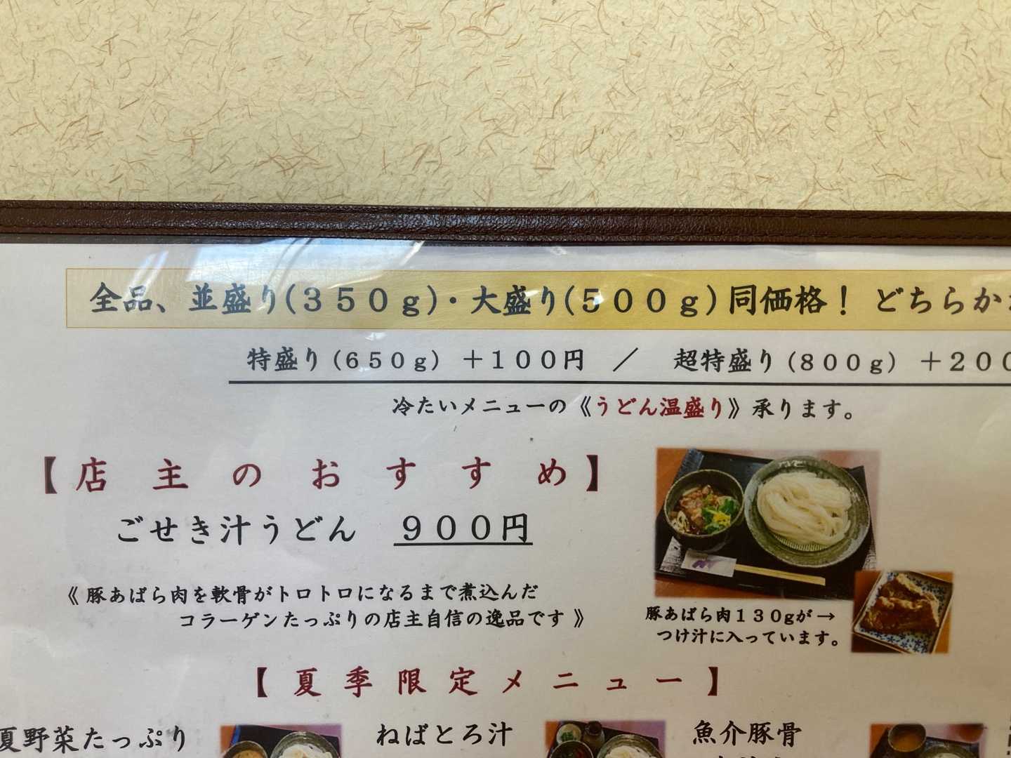 本日の昼飯代は店主のおすすめの ごせき汁うどん 大盛り900円なり!