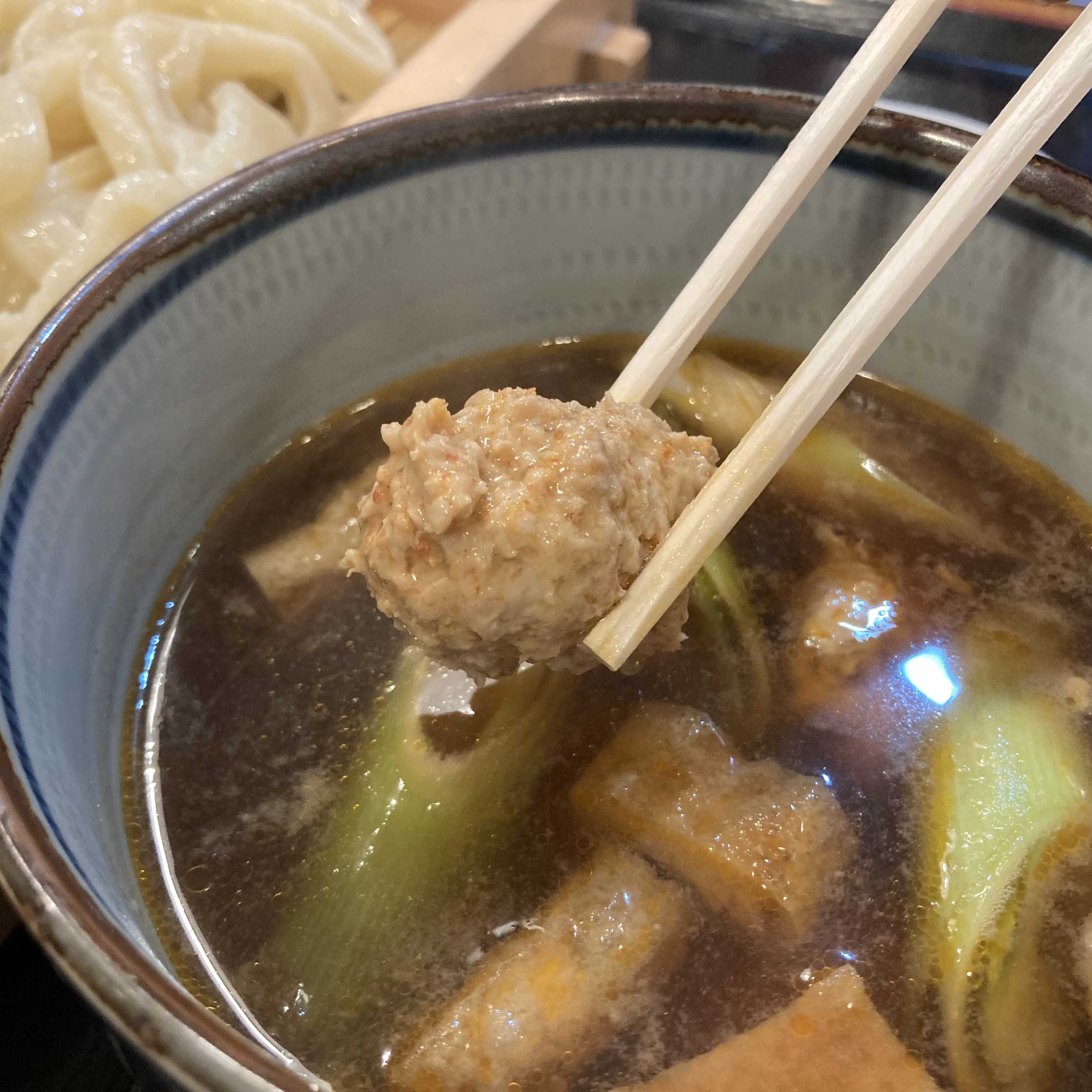 つくねも武蔵野うどん系のつけ汁にめっちゃ合うわーーーー!!