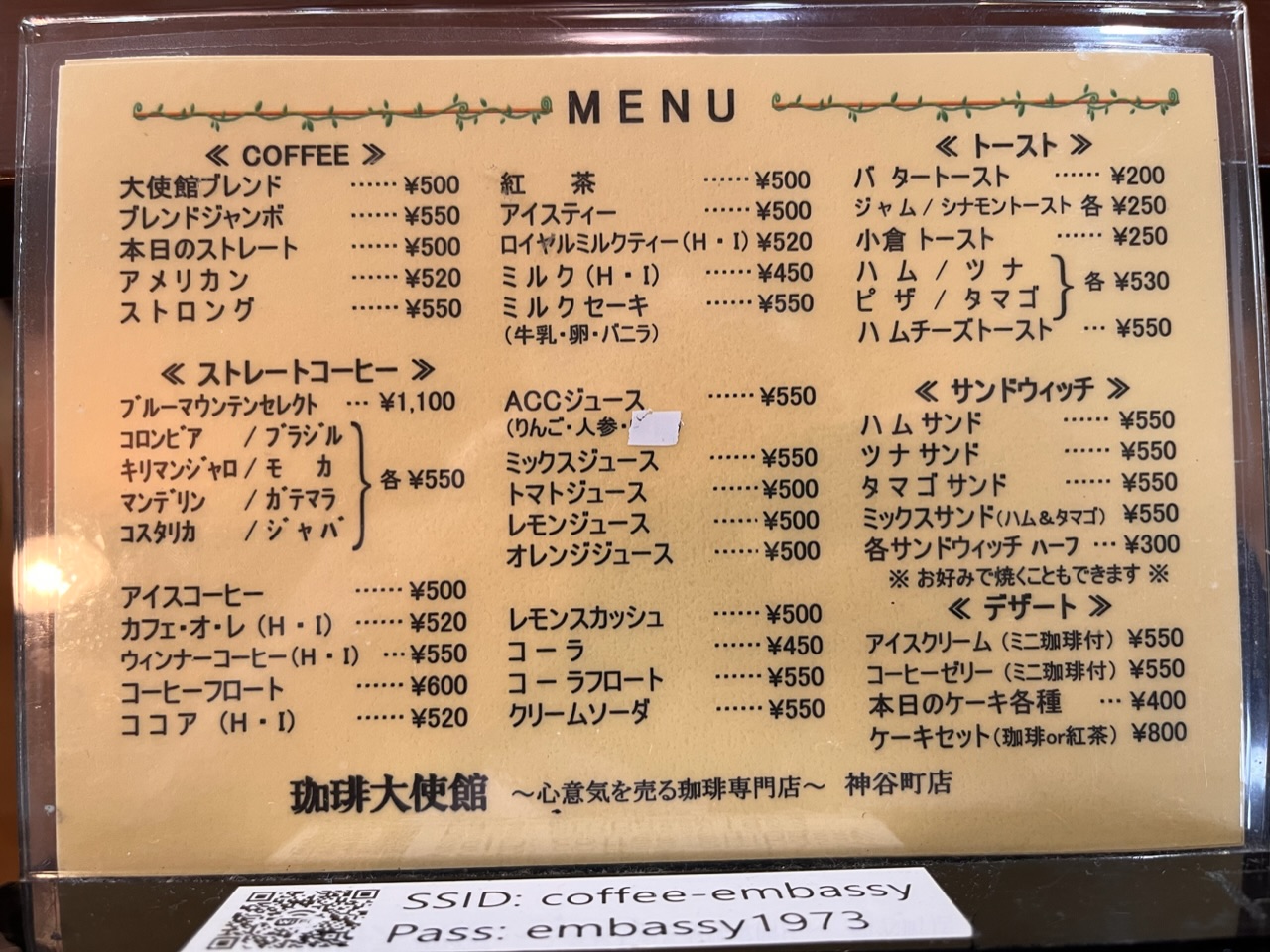 ブレンドコーヒー500円で〆て1050円なり!