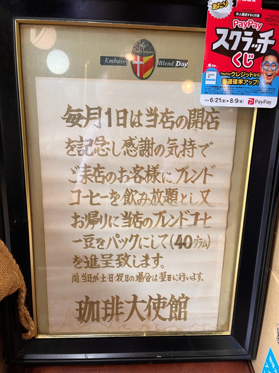 毎日1日はブレンドコーヒー飲み放題って