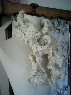 連休前から編み編みしていたものが完成 ちょっとくるくるした細いストールです首周りに二重に巻いてます。軽く垂らして巻くとこんな感じ 可愛い形で気に入りました~ ちなみに、モデルさんは、最近某オークションでお安く買った、スタイル抜群のトルソーちゃん只今愛称募集中で~す