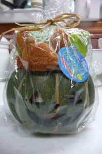 昨日の夜から今日の午前中、台風の影響で随分と雨が降りました。風は思ったほど強くなかったのでまだ良かったのですが、・・・やっちゃいました・・車のタイヤ、1本パンクして修繕不可です出勤途中に雨で道路が川のようになっていて気づかず、タイヤを道路のくぼみのようなところにひっかけてしまったようです。 ガゴッ こんなカンジの嫌~~~な音がしました。会社に着いたときはわからなかったのですが、会社の用事の出先で発見。幸い、旦那様が休みで家に居たので,スグ来てもらいました。旦那様は昔GSで働いていたので、タイヤ交換くらいはあっという間。JAFより早い本当に助かりました~ ありがとう それから、羽衣と風の親戚さんのサムくん家のママさんが、こんなに可愛らしいプレゼントを送ってくださいました 可愛いかぼちゃの入れ物に、わんこのおやつとおもちゃ入りです♪ せっかくなので、ハロウィンまでとっておこうっとサムママさん、お心遣いありがとうございました~~~