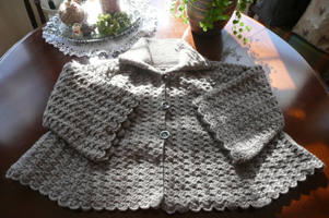 前に、編みかけでご紹介したものが、先日完成しました~~~~ じゃん ニットボレロでした~♪後ろはこんなカンジです。 先日ご紹介した部分は、後ろ身頃でした。ラグラン袖なので、ちょっと変わった形でしたね。早速、オードリーちゃんにも着てもらいましたよ ボタンは奮発して、水牛の角から作ったボタンにしました。大変だったけど、可愛く出来て大満足でも、まだまだ編みたくて買った毛糸がいっぱいあります。肩こりで湿布貼ってたりしますが、楽しくって仕方ありません 先日、お友達の pokke さん のところで拝見した、ビーズニッティングも興味深々 早速、本を取り寄せました。さて、出来るかな~~