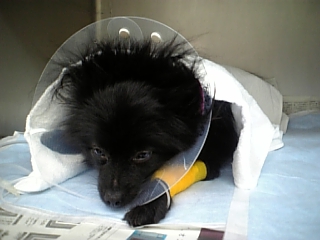 宇宙ちゃんの手術、無事に成功しました 午前10時頃に、病院にお願いして、お昼過ぎに手術、午後4時頃に病院にお話を聞きに行ってきました。宇宙ちゃんは麻酔から覚めたばかりで、ちょっと、ぼーーーーーっとしていましたが、あとは腫れがひけば、3日位で退院できるとのこと。前回、前足を骨折して、プレートを入れる手術をしたとき、点滴のチューブを噛み千切った前科のある宇宙ちゃんは、早速、エリザベスカラーを装着されてました。 がんばりまちた~~~、ぼぉ~~~。。。 宇宙ちゃん、ちっちゃな体でがんばったねこれからがもっと大変だけど、手術が成功して一安心。元気になるように、一緒に頑張ろうね みなさん、本当に沢山のコメントありがとうございます。お返事遅れてしまってごめんなさい。もう少しお時間くださいね