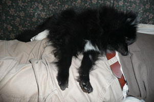 宇宙ちゃんが手術をして、丁度1週間。検診に行ったところ、順調な回復ぶりのようです パパさんのお腹の上は気持ちいいでち。。。 来週、様子を見てOKなら抜糸です