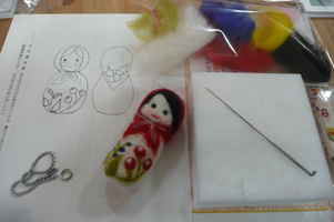 1日は、pokke さんの、羊毛講習会に参加してきました。今回は、マトリョーシカのマスコットを作成。ふわふわの羊毛を専用針でチクチク刺して形を作って固めていくのですが、羊毛の扱いは初めてなので、果たして出来るかどうか、ドキドキでしたもちろん、作成している間は、全く余裕無しひたすら集中してチクチクしてました。 そして、チクチクすること約3時間後。 右の針のようなもので、スポンジを土台にしてチクチクするんですよ♪ なんとか形になって一安心。・・・誰かに似てるような^^; 参加した皆さんの作品が集合~~♪ 写メで旦那様に見せたら興味深々早速、素人のニワカ講師になりそうですう~~~ん、pokkeさんやっぱり出張してぇ~~~