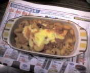 ミートソースもどきの中身は薄く切ったじゃがいもとベーコン。