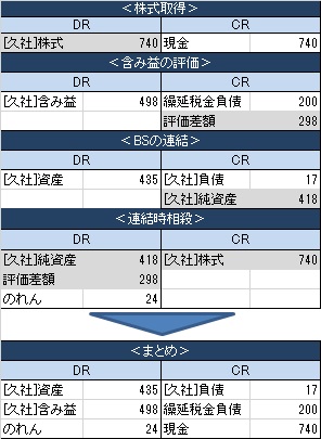 あとは、株式取得~連結するときまでの会計処理を考えると以下のようになり、、、
