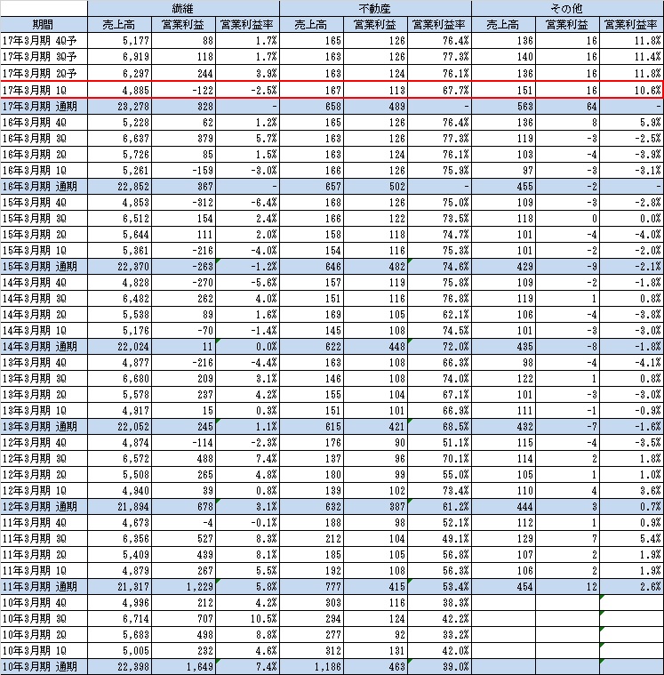 ・原価率の改善は評価できるが、繊維セグメントの売上減が一番の問題。ここが改善しないと業績改善は無理。