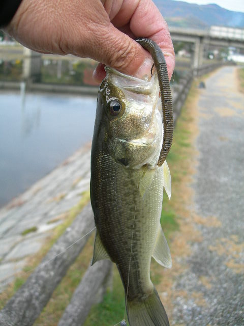 朝一なんと11cmがゲーリーカットテールノーシンカーで釣れ