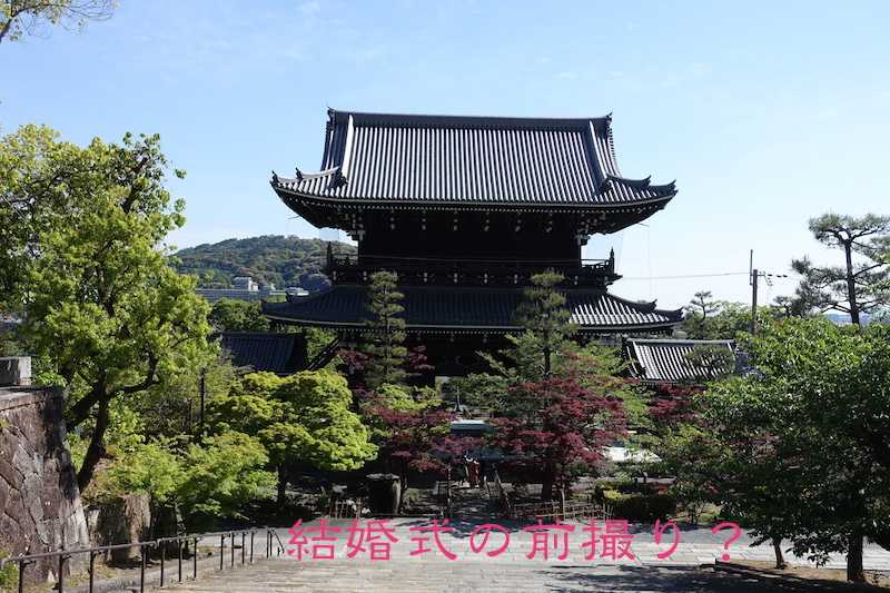 人がいない境内で結婚式のお写真を撮っていらっしゃいました。