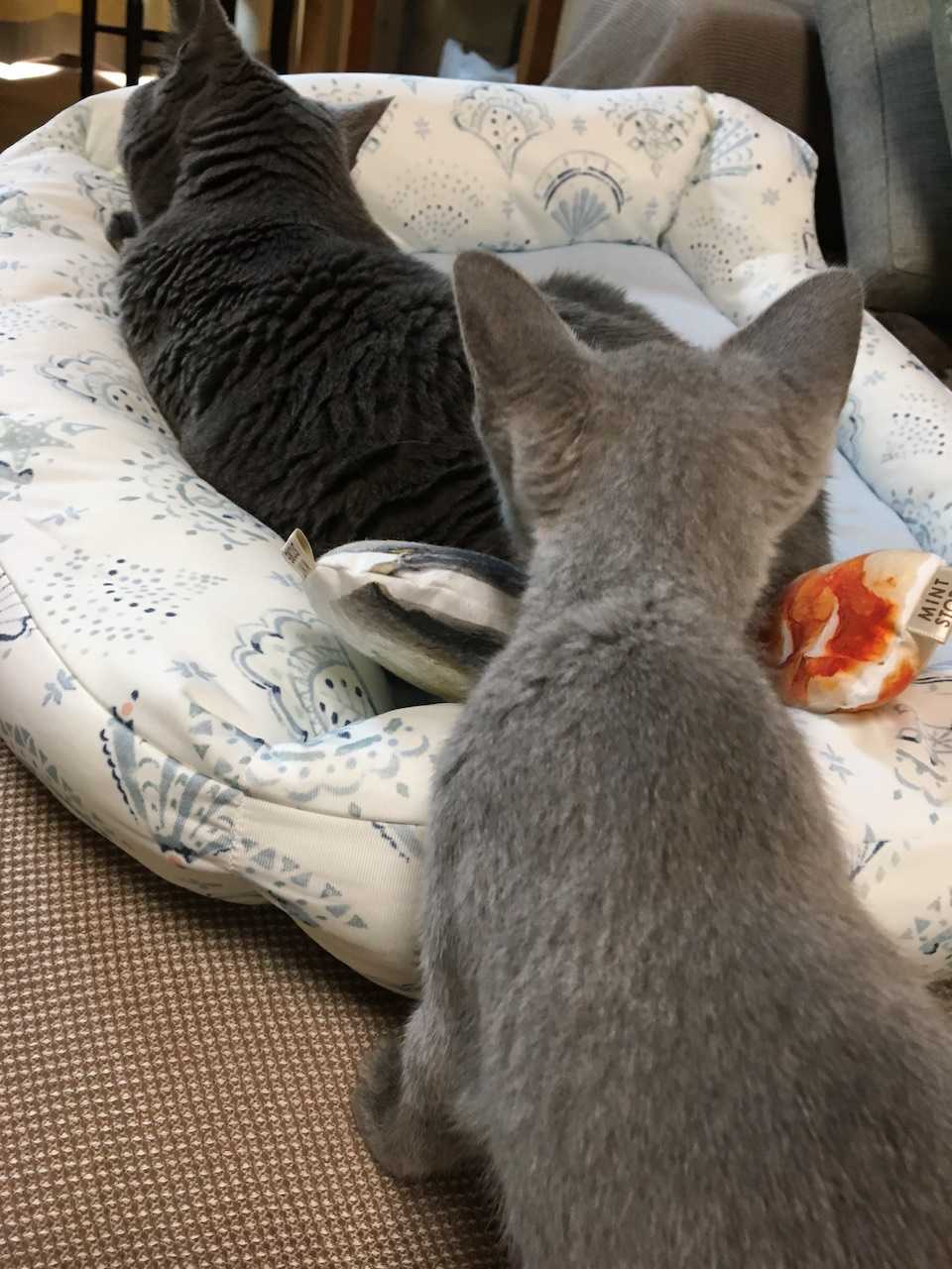 うっきー先生が眠っている隙に匂いを嗅ぎに行ったりしています。​