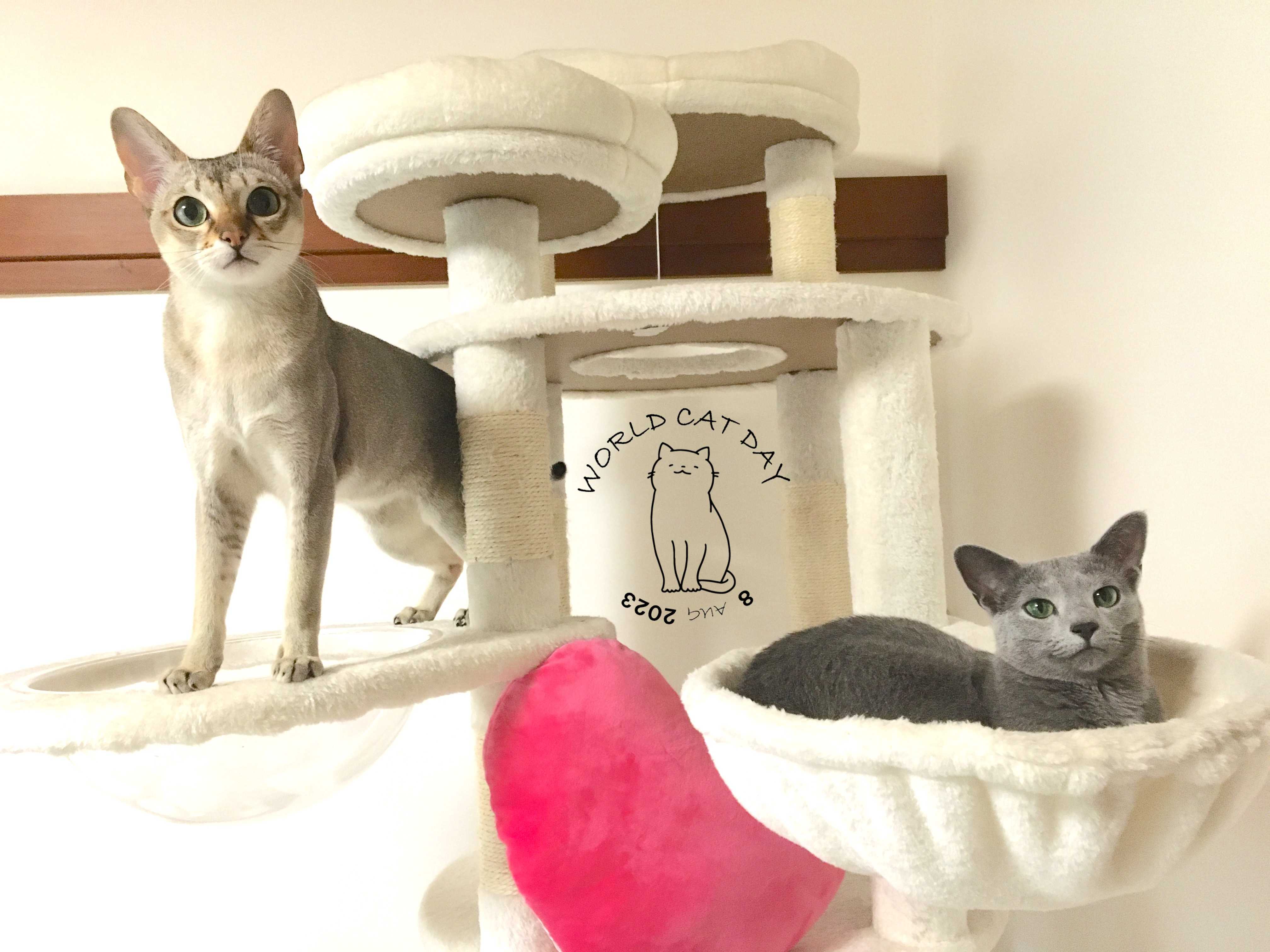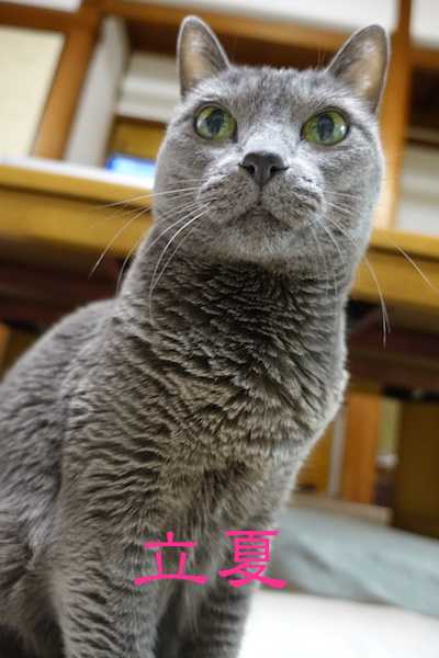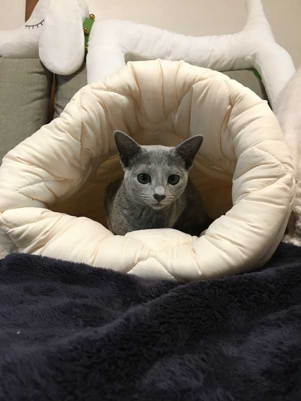 こんにちは有喜庵です。急に住人(住猫?)が増えたので、改めてご紹介します。先住猫:うっきー先生(ロシアンブルー、19歳)静寂を好む隠居猫。好物は病院ちゅ〜る。最近は小さきもの達の大騒ぎにイライラしている。第2住猫:ミミー(ロシアンブルー、6か月)猫同士仲良くしたい社交的な性格。好物はロイヤルカナングレービー、レタス、梨、焼き海苔。お食事のマナーはピカイチ。第3住猫:ルル(シンガプーラ、3か月)我が道を行くおぼっちゃま気質。猫同士よりもしもべと仲良くしたい(甘えたい?)性質。男の子だけどフワフワやモフモフ、モコモコの女子力高めのアイテムが好き。好物はカリカリと焼き海苔。うっきー先生は孤高の猫なので、ミミー&ルルのことは相手にしていません。うるさいと叱ります。ミミーはルルが大好きで、構ってばかりいますが、ルルは一人で遊びたい時があるようで、しょっちゅうちょっかいを出してくるミミーに仕方なく相手をしている感じです。ミミーがあんまりウザイと反撃しています。最近はこんな感じで生活しています。今後ともよろしくお願いします。しもべ1号