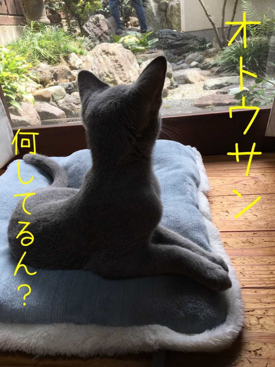 こんにちは有喜庵です。日記が消えてしまった!( ´Д⊂ヽ みたいなので、再投稿します。暑いのでしばらくカーテンを開けていませんでしたが、ようやく秋の気配です。庭のオトウサンを見つめるミミー。ミミーはオトウサン(しもべ2号)が大好きです。人間の娘と違って、年頃になっても嫌われないからよかったね。 ( ´艸`)ウフフ 先住猫うっきー先生とは相変わらずですが、うっきー先生が眠っている隙に匂いを嗅ぎに行ったりしています。( *¯ ꒳¯*)くんくんうっきー先生も日によってミミーのやることに知らんぷりしてくれていたり、かと思えば翌日は朝から塩対応(シャーッ!!)だったり…。乙女心は分かりません。(-""-;)いつか仲良くなれるでしょうか?しもべ1号@ミミズ腫れだらけ