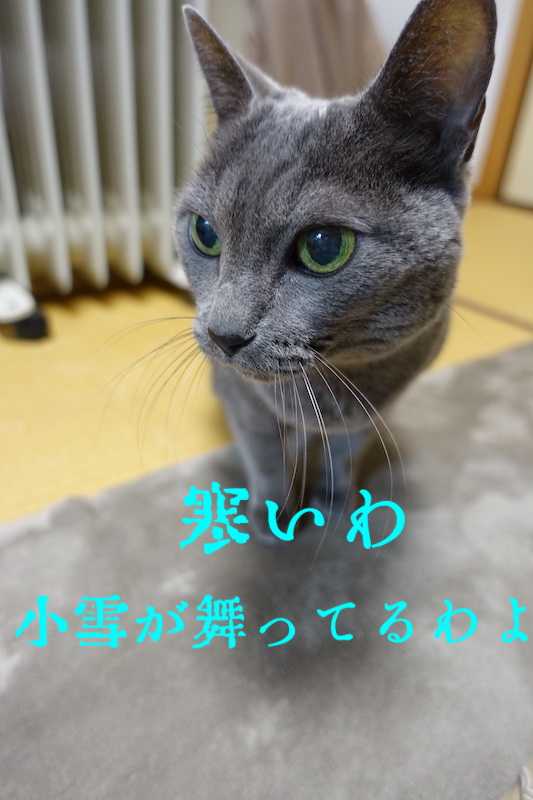 御無沙汰しております。京都は朝から雪が降り続いています。うっきー先生はこたつの中で伸びています。うっきー:「縁側で日向ぼっこしていた頃が懐かしいわ。」えらい格好で寝てはる。口開いてますやん。今日は年始の画像撮影をしたのですが、毎年上手く撮れません。なぜじっとしてくれないのか…。今晩、挙動不審な猫画像がUPされる予定です。しもべ1号は昨日から腰をやっちゃいまして、かがむ姿勢が出来ません。皆様もお体にお気をつけてお過ごしください。しもべ1号