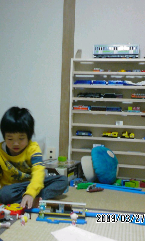 できましたよ、プラレール収納棚(^w^) 完成はしたものの、倒れてきそうだから、壁にボンドで貼っちゃったけどw このところ、ほとんどプラレールを出すことすらなかったんだけど、棚が完成してから1週間毎日遊び続けています(≧∇≦) ついでに、みずもプラレールを組み立てられるようになったから、楽しさ倍増! 朝からプラレールを組み立てています( ̄∀ ̄)