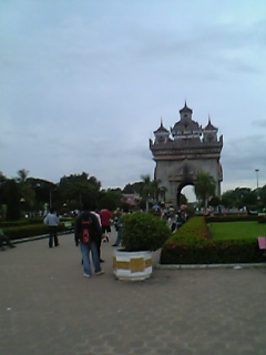 パトゥーサイの裏側に来た。表にもベンチなどがあるが、裏はパトゥーサイパークとなっていて、人が多かった。一眼デジカを持ったカメラマンも多数いて撮影している。