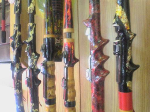 ここに並んだ竿は2本を除き、全て再起不能や捨てられた竿を回収・修理したものです。基本的に、どこから折れても、車に踏み潰されても、修理出来るのに・・・・大手のメーカーもイイ加減なモノです。それに踊らされて、へー・へーと買ってしまうユーザーがバカみたいに多いから、コレも問題なのでしょう・・・・。