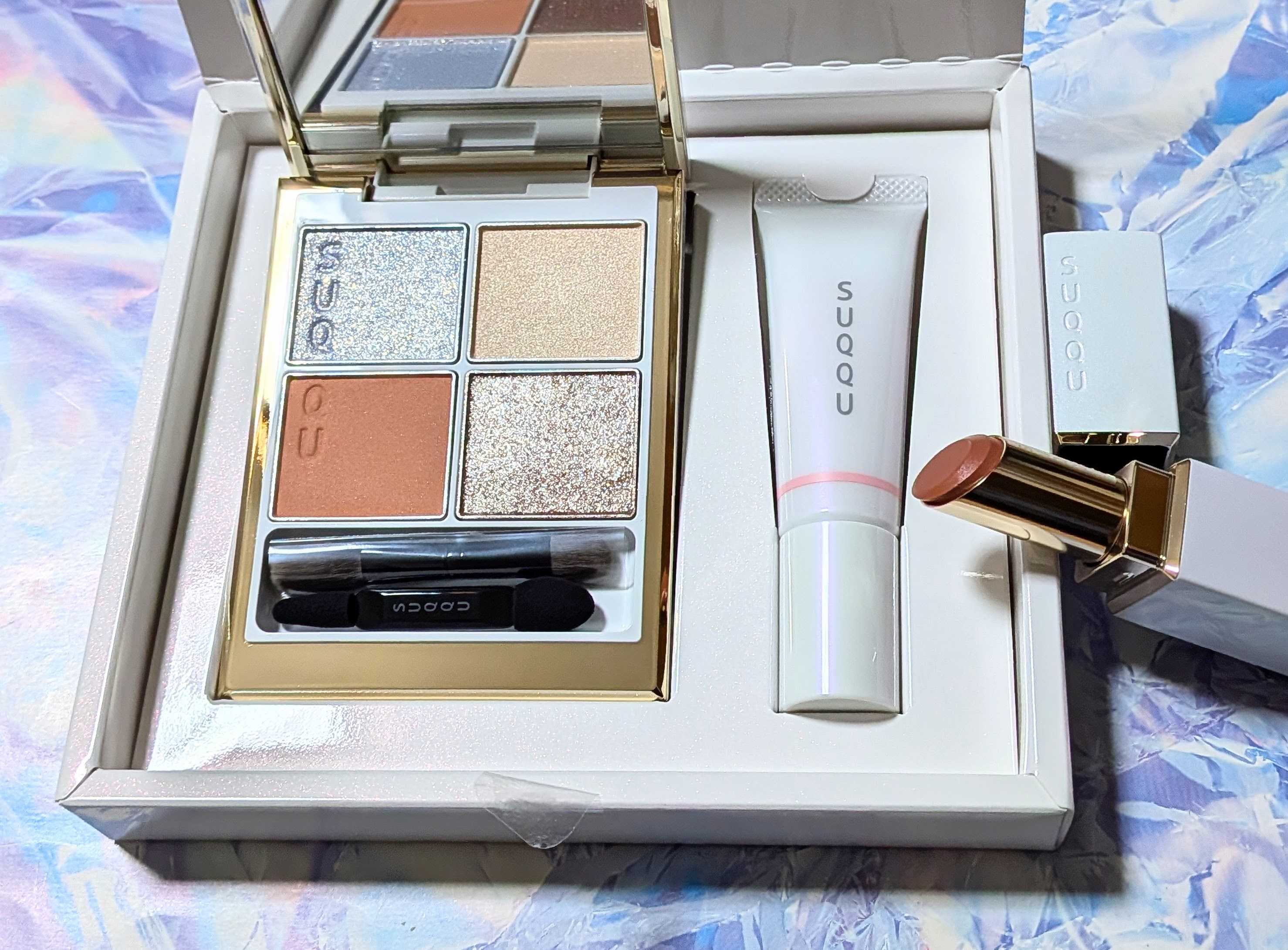3連休中に当選したSUQQUのクリスマスコフレを引き取りに行った。本当はもっと遅い日程で行くつもりだった。クリスマスコフレや限定品の販売直後は、こちらは凄~く混むのは有名だから。でも、運悪く(?)この3連休中に、引き取りに行く百貨店でポイントUPのキャンペーンを開催していて。どうせ同じ金額を支払うなら、ポイント倍増の方がいいな、と思ってしまったのだ。これがもう大失敗。仕事が終わってから向かったのだが、整理券を受け取ってから1時間も待ったのだ。仕事も忙しかったし、もう疲労困憊。せっかくのクリスマスコフレはもっと優雅な気持ちでお迎えに行かなくては。反省しきりだ。でも、美しいクリスマスコフレはホリデー気分を盛り上げてくれる。私がライブショッピングで気に入ったのはこちら。オレンジ×シルバーの光飾。もう1つの舜華の方が人気が高いのだが、可憐なピンク系で私にはちょっと可愛すぎる。そして既存色のリップの陽風に、限定の白のリップケース。とても楽しみにしていたクリスマスコフレ。しばらくは使えなくて、眺めてほーっとするだろう。いつもときめくコスメを作って頂いて感謝だ。にほんブログ村