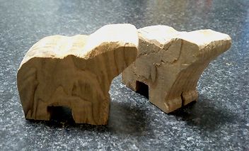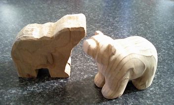 ええと。昨日のブツはこんな感じになりました。モロモロが怖くて、これ以上彫刻刀で削れません。一応ね、クマなのですよ。犬に見える?クマだと思って見て下さいね。ほ~ら、クマに見えてきた。←無理やりちなみにシロクマは別の型紙を用意しています。右が今回のクマの型紙で、左がシロクマの型紙。え、違いがわからない?そ、そうですよね。これなら分かるかな。リアル系熊フィギュアシリーズフランスPAPO社製のクマちゃん達が今回のモデルです。次はシロクマだ!おー!