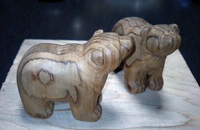 神代杉で作っていたクマがこんな感じに仕上がりました。蜜蝋ワックスを薄く2回塗ってみました。良く言うとアンティーク風?クマの足元の板が材料となった神代杉です。実物は木目がもう少し光ってます。手の中に納まるサイズなので、ニギニギしてもらうともっと風合いがよくなると思います。色々な動物を作って木製ミニ動物園とか面白いかも~、なんて思ってみたり。体に無害なワックスを使っているので、子供向けにいいかなぁ。う~ん、でも、機械物好きなうちの甥っ子には不評だな。