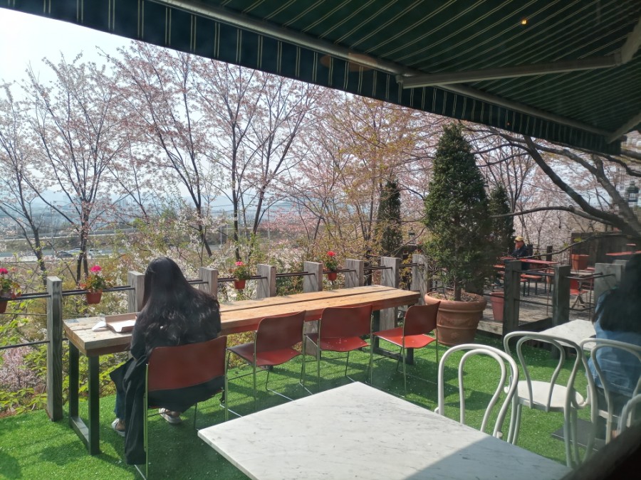 その日は今年最後のお花見ができる日曜日になるだろうと思います。おそらく次の週末は散ってるだろうと思います。でも桜は散っても雰囲気最高のカフェです。
