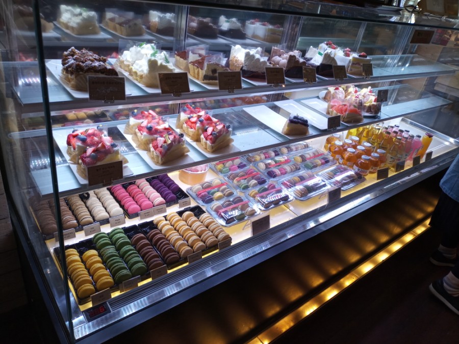 多くのパン&ケーキがあり、何を食べようか迷います。ランチを食べて行ったので満腹だけど、ここに来たら食べなくっちゃ!