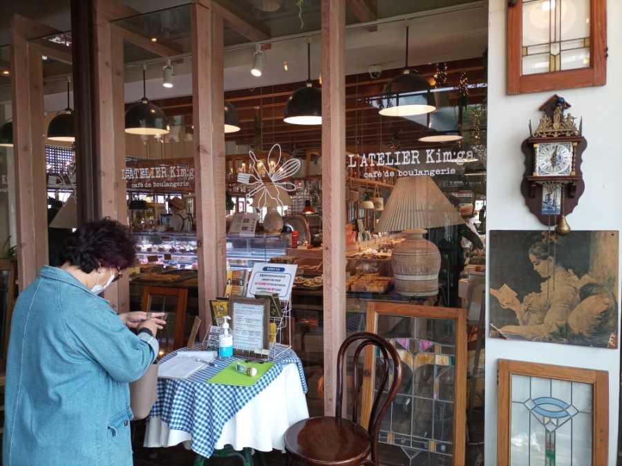 中に入れば、まずコロナ対策のために、消毒と出入りリストを作成します。