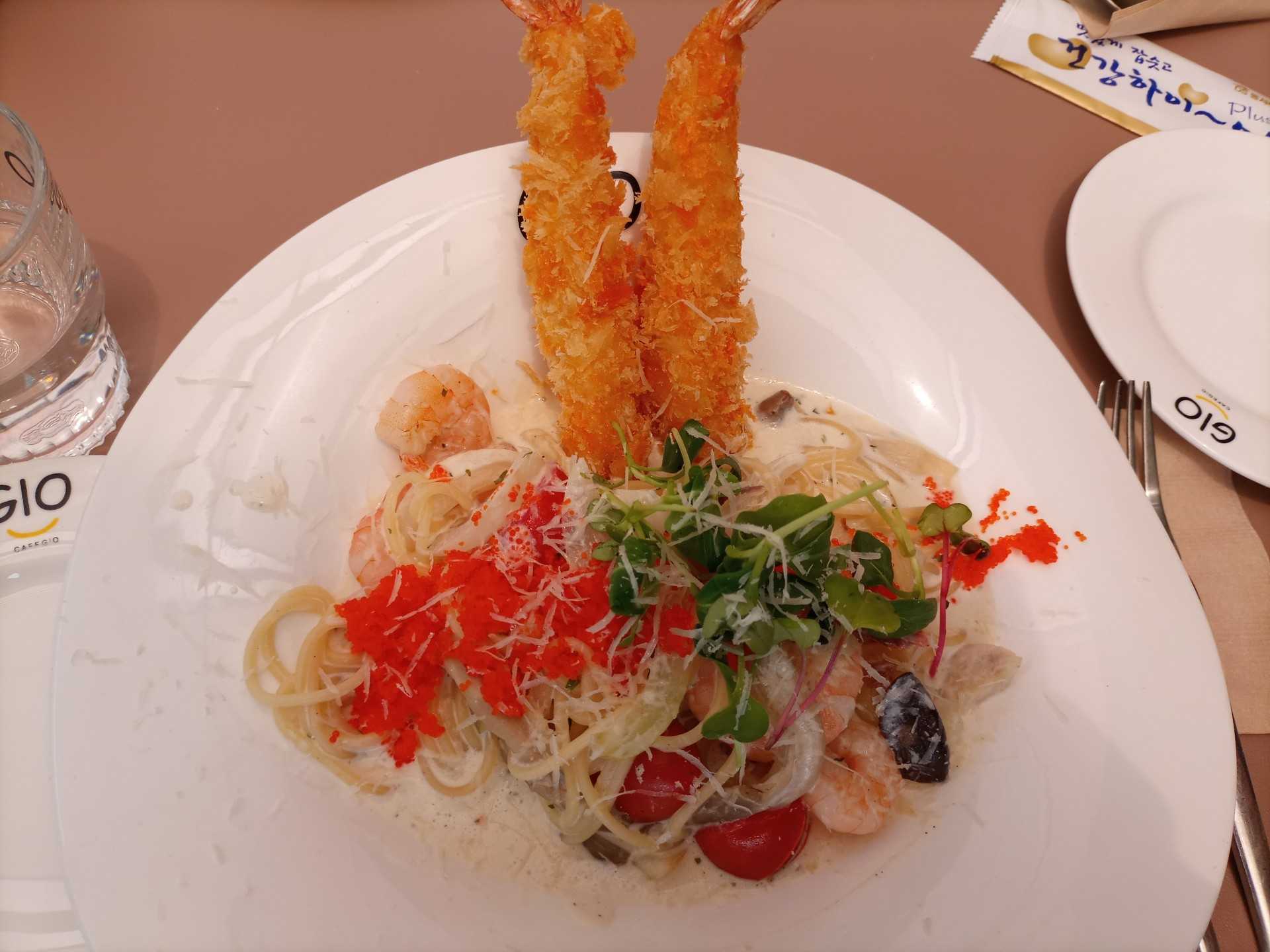 飛び魚の卵とえびのクリームパスタ