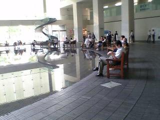 パスポートつくりに、今回は産貿センターでなく川崎へ 横浜ビジネスパークか川崎県民センター(何で“川崎”県民?)かぐらいのバブリーな建物、パブリックアートも楽しめます。建物の中に半端じゃない池が、、写真中央やや左上に見えるのは螺旋階段石、どっかーん、、中央にっチッチッと見えるのは“ヒト”がくつろいでいるのです。螺旋階段をのぼるとココへ。一個じゃないよ、建物内から外にまで続く石そんで、できあがり