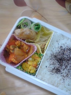 あんまり見せるほどの物でもないんだけど完成画像をやっと撮ったのでUPもやしのナムル、つくねハンバーグ、チーズコーン(人参、エリンギ入り)キャベツハムロール、野菜のトマト煮込み(ちなみに昨日の残りアレンジ)ダイエット用といっても冷凍食品、揚げ物を使わない油、肉は少なめ、できるだけカロリーの低い材料でそれを意識しているだけで適当に作っています。100均でミニタルト用にと買ったシリコンお弁当カップちゃんとお弁当用として活躍。旦那様は会社でレンジで温めるのでアルミは使えないのだ~。四角のが欲しいなぁ。紙カップと違って無理につめると縮んでくれない形が崩れると可愛くない。しっかり隙間なく詰めたい時に不便だな・・。ちなみに、旦那様の体重は少し下降気味です^m^夕飯も野菜たっぷりのカロリーオフメニュー、おやつ、お腹がすいたときはバナナのみ効いてきてるかな♪カロリーオフのご飯は家計に優しい(笑)